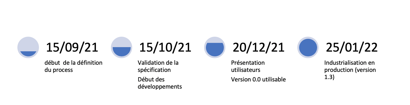 Pour y parvenir, un travail conjoint entre DSA/QUALITE/MOA/DSI a permis de poser et rédiger le processus complet. De son côté, notre partenaire HARDIS a développé sur cette base le robot « Sérénité » qui prend en compte les étapes 1 à 3 précédemment citées. Une phase de tests suivie d’ajustements a permis de livrer une première version MVP (Most Valuable Product ou version la plus minimaliste possible d’un produit) opérationnelle à échelle industrielle dès mi-décembre, avec une appropriation complète par la DSA mi-janvier.
