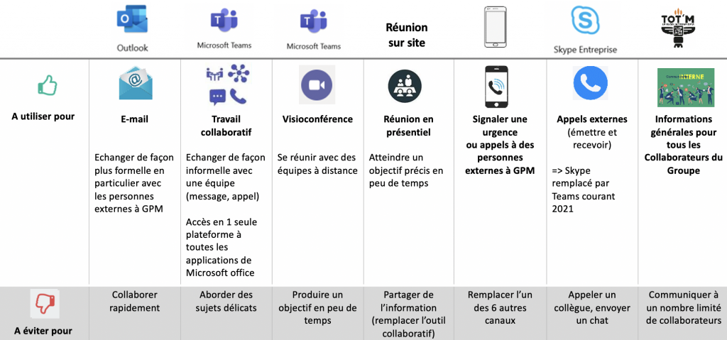 Quels sont les outils de communication utilisés chez GPM ? Et pour quoi ?