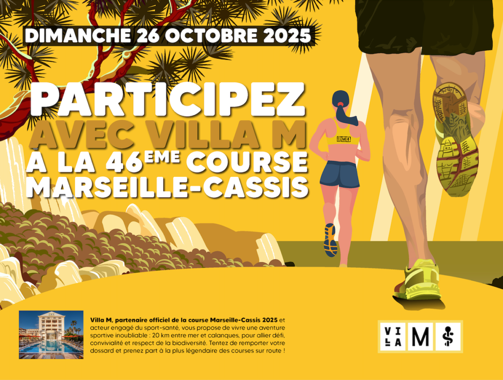 Villa M est partenaire cette année de la 46ᵉ édition de la mythique course Marseille-Cassis, événement incontournable du calendrier sportif français. Ce rendez-vous emblématique rassemble chaque année plus de 20 000 coureurs pour un défi exceptionnel de 20 km entre mer et collines, du stade Vélodrome jusqu’à Cassis, en traversant les panoramas spectaculaires du Parc national des Calanques.