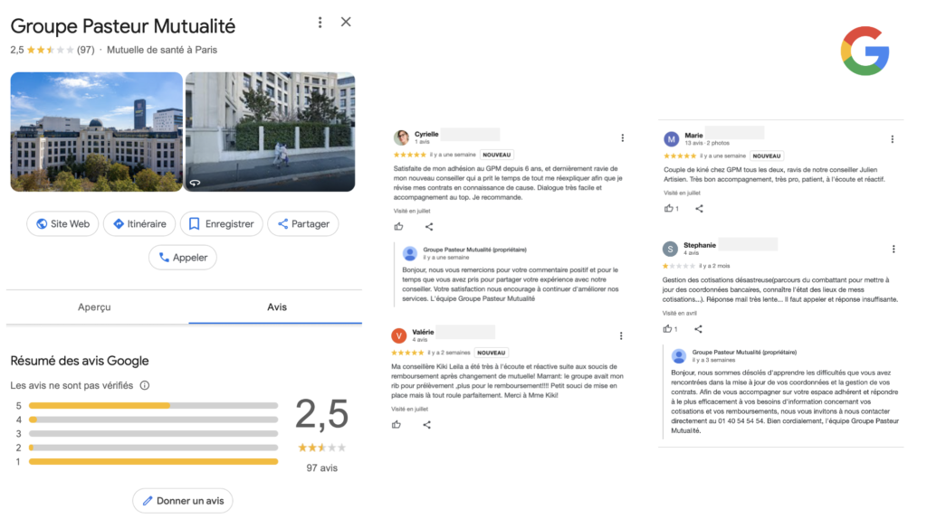 La gestion de notre e-réputation constitue une priorité stratégique et un enjeu majeur pour Groupe Pasteur Mutualité. L’e-réputation et les avis clients influencent aujourd’hui de très nombreuses décisions d’achat et de consommation. Maîtriser notre e-réputation est donc crucial pour nous distinguer sur notre marché et renforcer la confiance de nos adhérents actuels et futurs. De nombreuses actions sont menées en ce sens dans le cadre de notre démarche qualité.