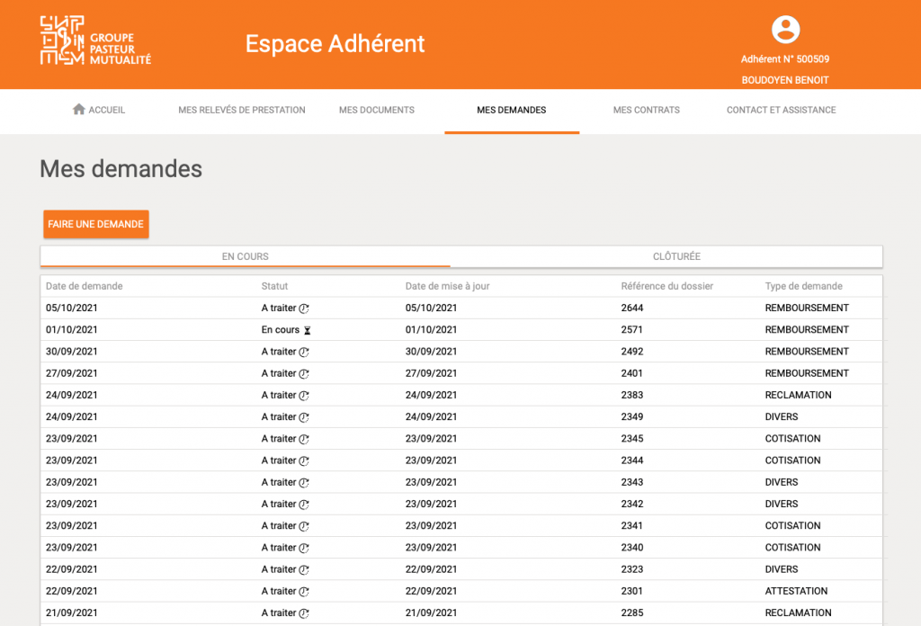 Espace adhérent : déploiement du module « Mes demandes»