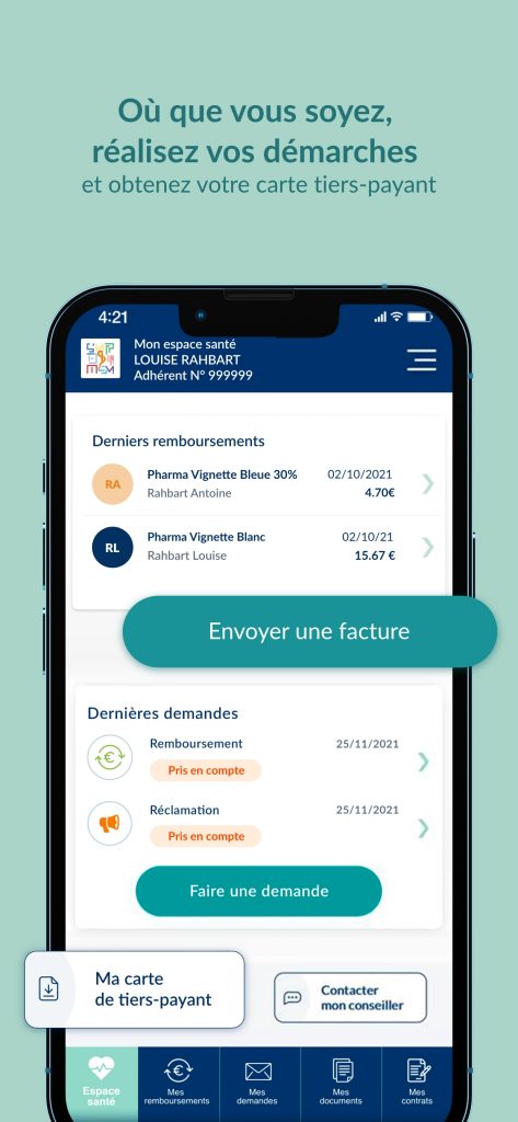 Grâce à leur appli, nos adhérents peuvent également contacter directement leur conseiller ou être mis en relation avec nos équipes de gestion.