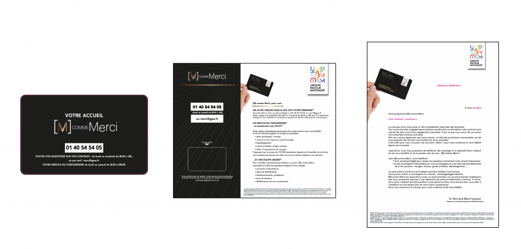 • Courrier papier intégrant la carte de membre [M] comme Merci ;