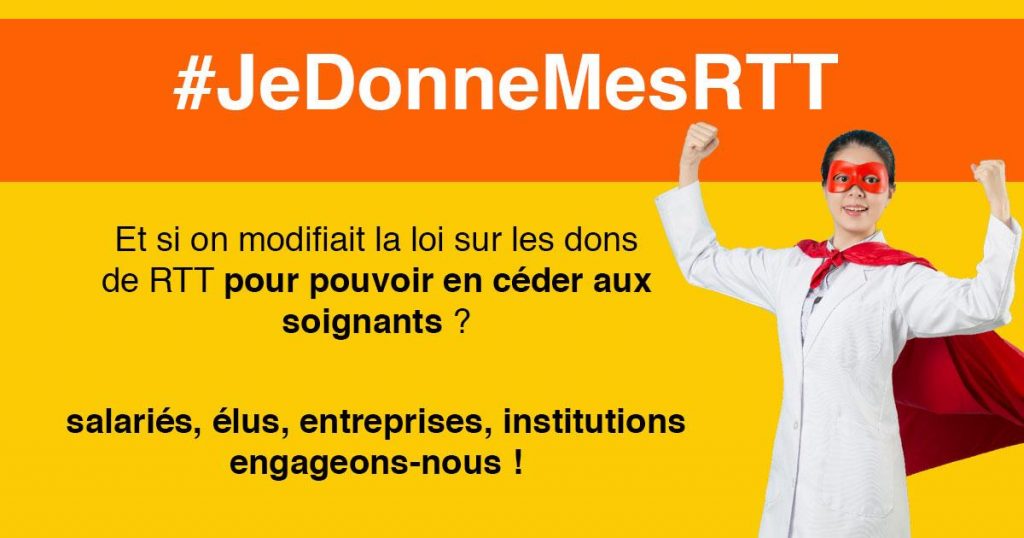 L’initiative solidaire #JeDonneMesRTT lancée vendredi par Groupe Pasteur Mutualité en faveur des soignants et de la modification de la loi sur le don de RTT à l’extérieur d’une même entreprise, avance. Elle est déjà massivement relayée, partagée et commentée sur les réseaux sociaux ainsi que dans les médias.