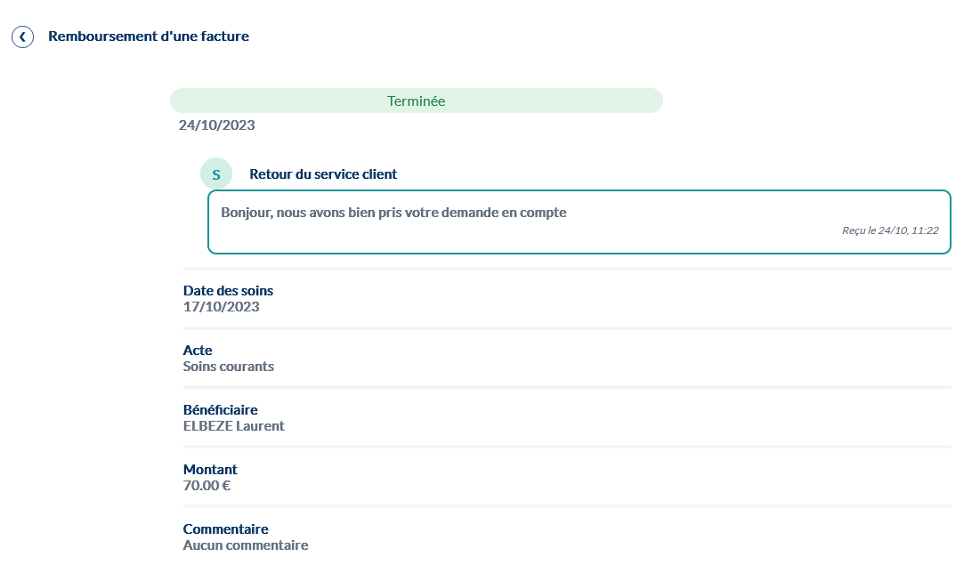 Pour rappel, le module « Mes demandes » permet à l’adhérent d’envoyer via un formulaire en ligne, tout type de demande (remboursement, information sur les contrats, modification de coordonnées…). Celles-ci sont alors réceptionnées dans la GED par les équipes dédiées, et l’adhérent peut suivre le traitement de sa demande sur le module.