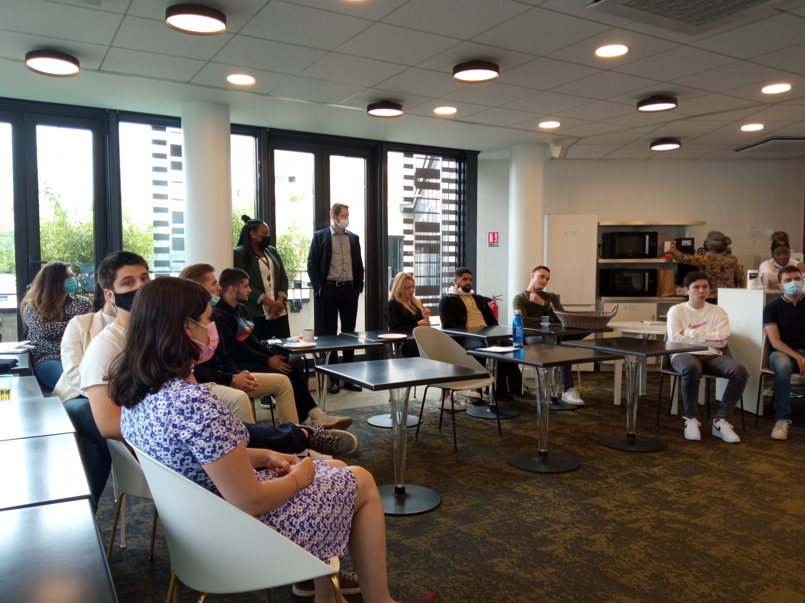Moment de convivialité et d’échanges informels, la matinée a commencé par un café d’accueil à la cafétéria du 1 BD PASTEUR en présence des alternants mais aussi de leurs tuteurs. Elle a été suivie de la restitution des résultats d’un questionnaire transmis préalablement aux alternants puis d’un tour de table et de prises de parole permettant à chacun de se présenter, de revenir sur les points positifs et les axes d’améliorations de chaque alternance et d’évoquer ensemble l’après Groupe Pasteur Mutualité.