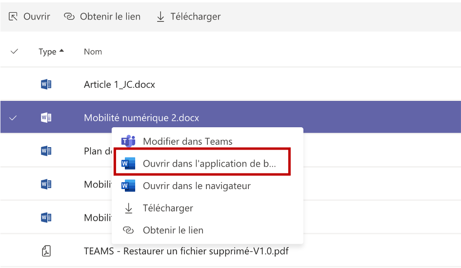 2. Clic droit « Ouvrir dans l’application de bureau ».