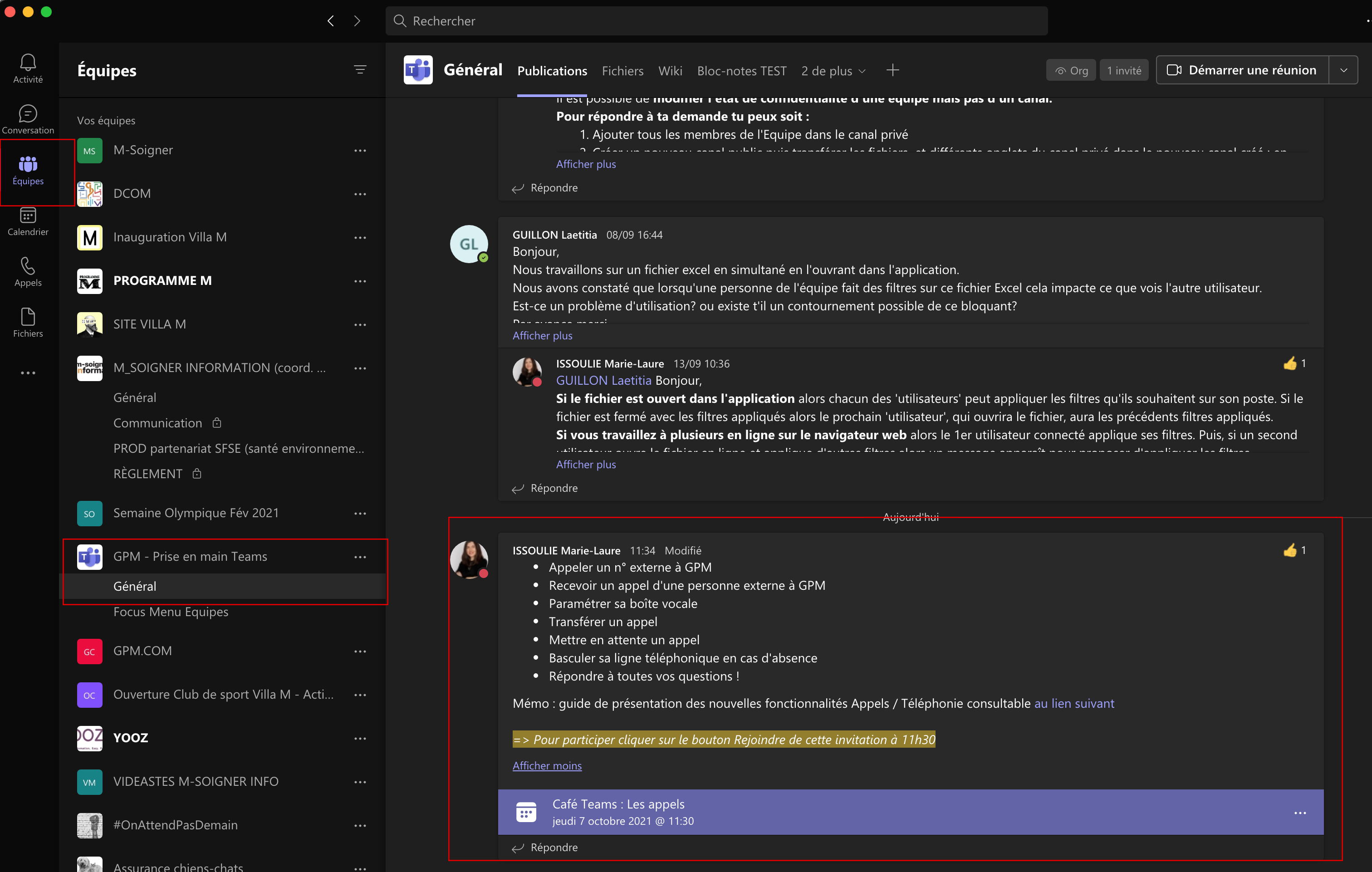 Lors de vos premières utilisations, n’hésitez pas à poser vos questions sur l’équipe teams « GPM – Prise en mains Teams » !