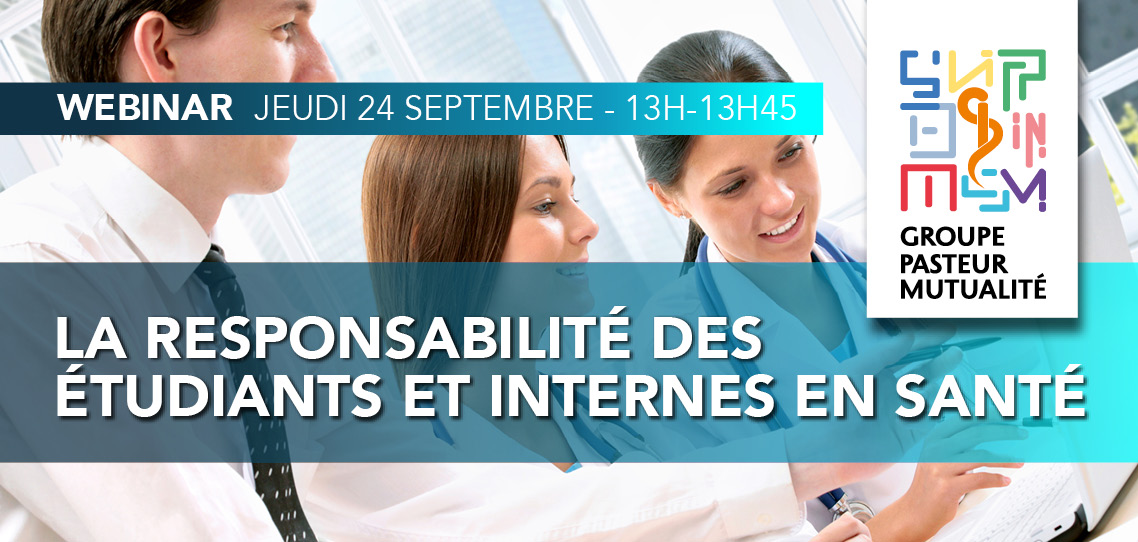 Dans le cadre de sa chaîne de webinars, Groupe Pasteur Mutualité propose à ses adhérents une série de 4 conférences en ligne au coeur de leurs pratiques. Management des équipes, exercice libéral, responsabilité des étudiants et des internes, prévention et éducation en santé…, ces webinars de 45 minutes ont vocation à les accompagner et les guider dans la gestion de leur exercice professionnel.