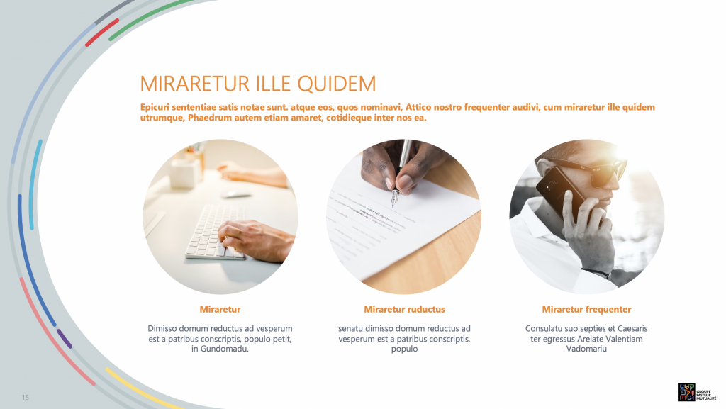 Pour vous accompagner dans la réalisation de vos supports et diaporamas PowerPoint, un nouveau gabarit de conception a été créé aux couleurs du Groupe. Il a vocation à nous permettre de communiquer uniformément à partir d’un seul et même modèle de présentation. Vous pouvez l’utiliser, le modifier et le personnaliser avec vos propres texte et images.