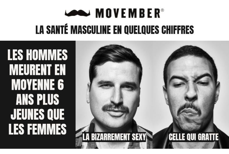 Les hommes négligent considérablement leur santé. Ce désintérêt se traduit par une moyenne alarmante, puisque les femmes vivraient en moyenne 6 ans de plus qu’eux selon l’INSEE. A travers son action Movember met en lumière les maladies les plus répandues au sein de la gente masculine comme le cancer de la prostate et celui des testicules ce qui permet d’éveiller les consciences.
