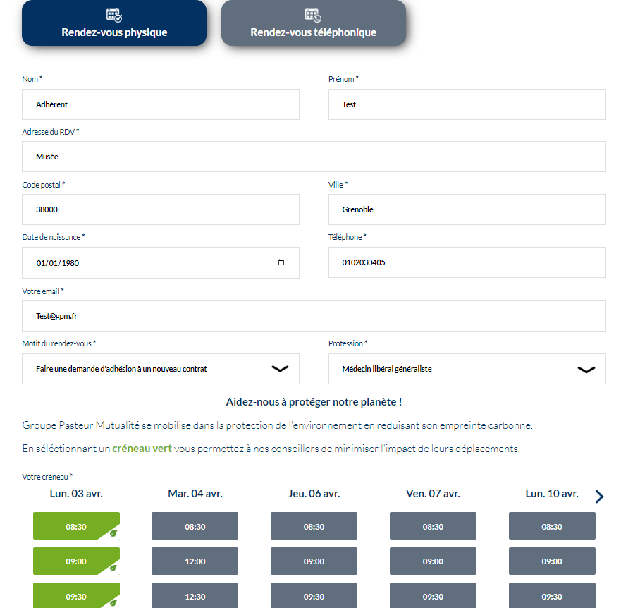 Cette évolution permet désormais à nos adhérents mais aussi à tous nos prospects professionnels de santé de prendre rendez-vous avec un conseiller sectorisé depuis le site internet gpm.fr. Elle s’inscrit dans une double logique, à la fois d’optimisation et de qualité de services apportés à travers la mise en place de solutions facilitantes et innovantes, et aussi de réponses à nos obligations réglementaires en matière de démarchage téléphonique.