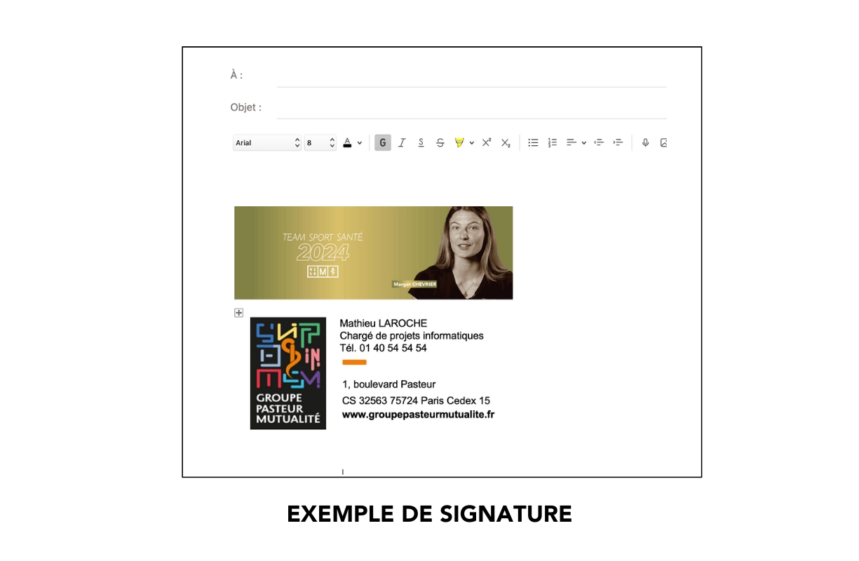• Copiez la bannière Team Sport Santé (en faisant ctrl C), puis coller la (en faisant ctrl V) dans votre signature.